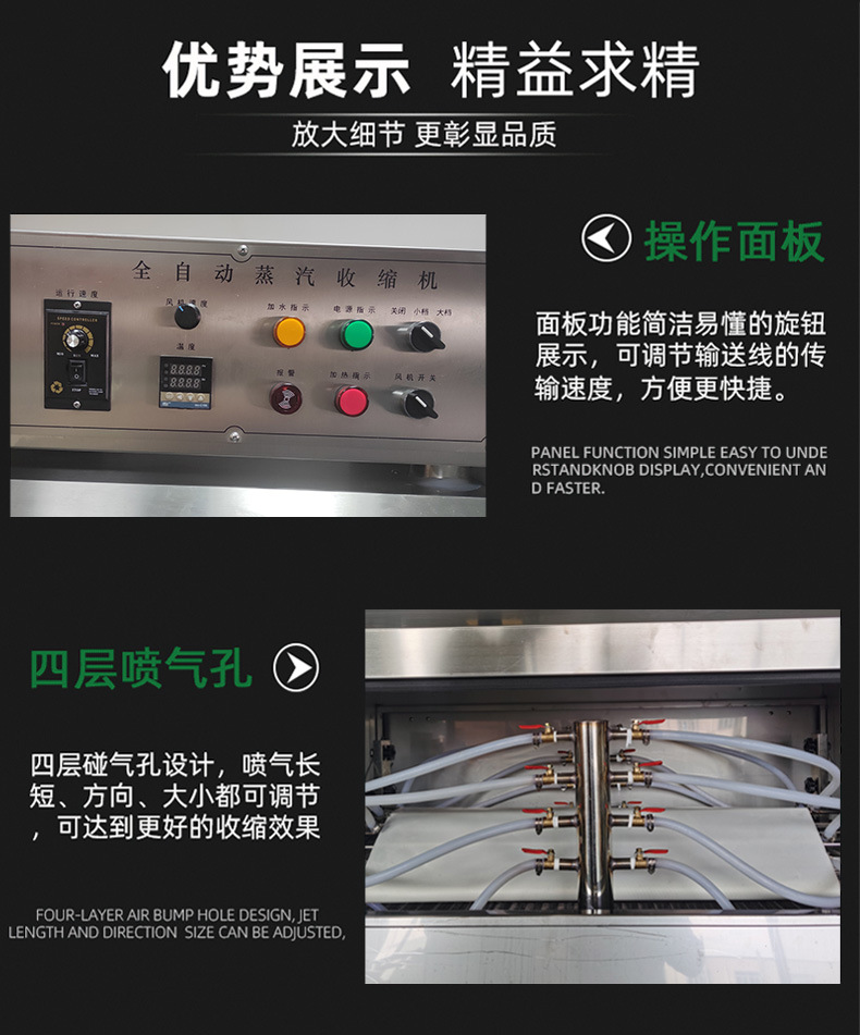 • 操作簡便:配備溫度計及壓力表,蒸汽壓力及收縮溫度一目了然,開機操作方便 。蒸汽進氣閥門裝有刻度盤,節省每班操作開機時間,操作人員可以快速準確地進行參數設置和調整,降低了操作難度和培訓成本123.