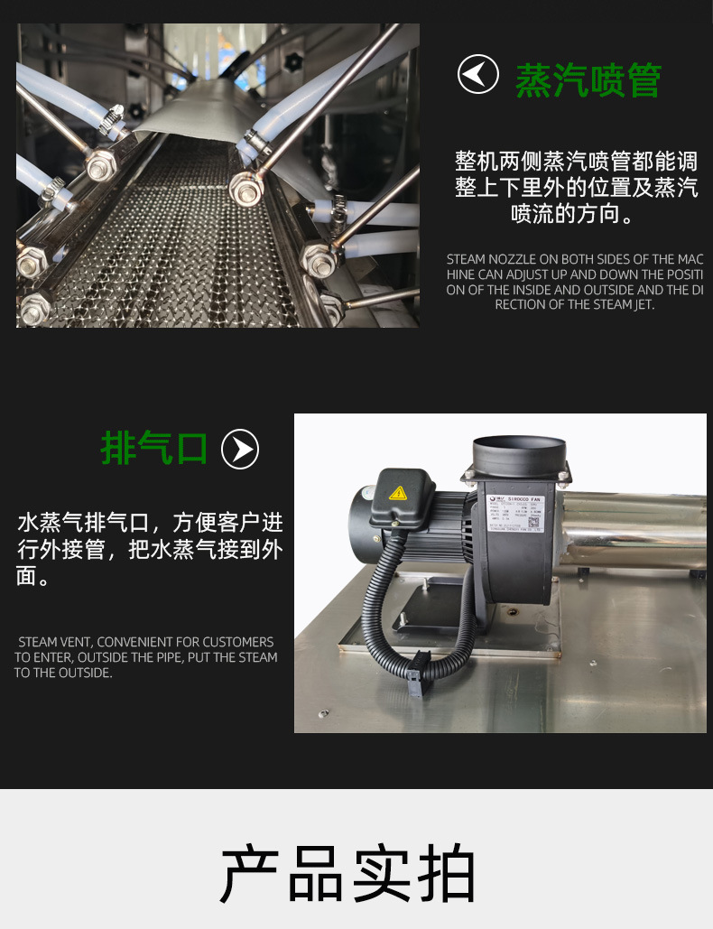 • 結構設計合理:整機三層隔熱,減少熱量散失,采用防水設計,不銹鋼 304 制造,具有良好的耐用性和抗腐蝕性,能夠適應潮濕、高溫等惡劣的工作環境,延長設備的使用壽命。同時,整機前后端裝有進出口護罩裝置,減少蒸汽外泄,不僅保溫效果好,還能避免蒸汽對操作人員造成傷害123.