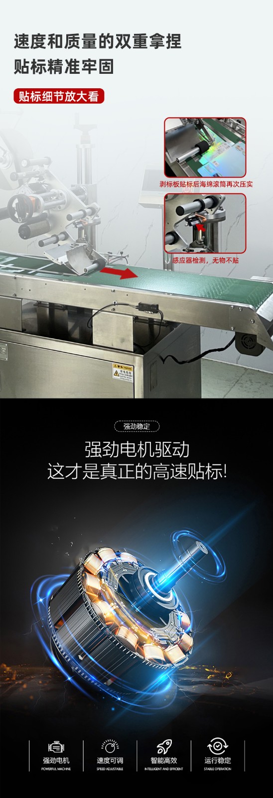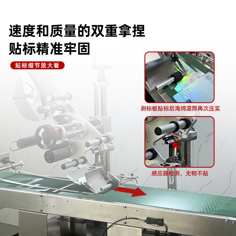 貼標精度高:采用細分步進電機或伺服電機驅動送標,搭配標帶繞行糾偏機構和偏心輪牽引機構,確保出標精準,貼標精度可達 ±1mm。