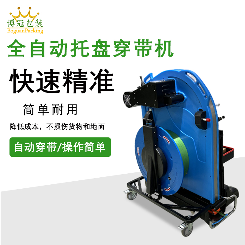 托盤穿帶打包機,又稱穿劍式或穿箭式托盤打包機,是專為棧板與貨物一體化捆扎設計的重型包裝設備。其核心作用是通過專用穿帶機構,將打包帶精準穿透托盤底部間隙,環繞整托貨物完成捆扎,從而實現托盤與貨物的牢固固定,徹底解決長途運輸、堆疊倉儲過程中貨物散垛、倒塌的問題,是工業物流與外貿包裝環節的核心裝備。