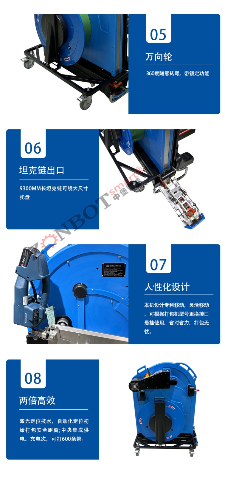 作業效率大幅提升,單人即可完成操作,相比傳統人工捆扎,效率提升 3-5 倍,同時減少操作人員彎腰、搬運等重復勞動,降低勞動強度。